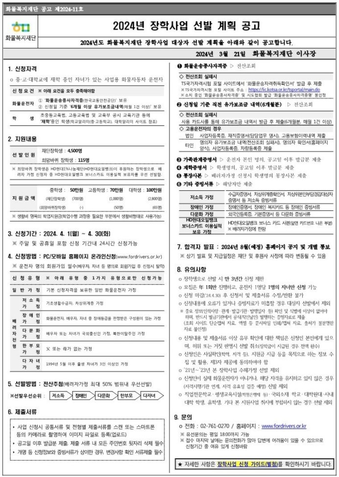 장학사업을 진행하여 안내해드립니다.
