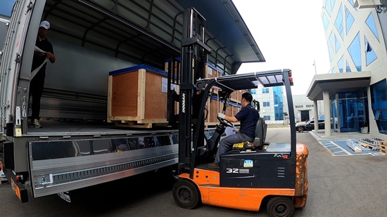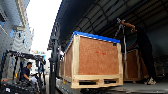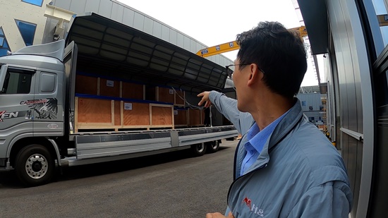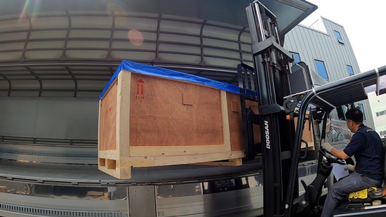 포장하여 수출제품을 상차하고 있는
