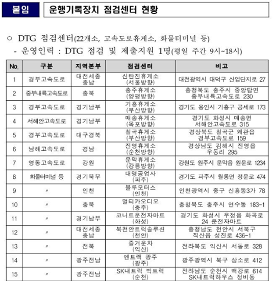 2024년 운행기록 장치를 무상점검 할수 있는